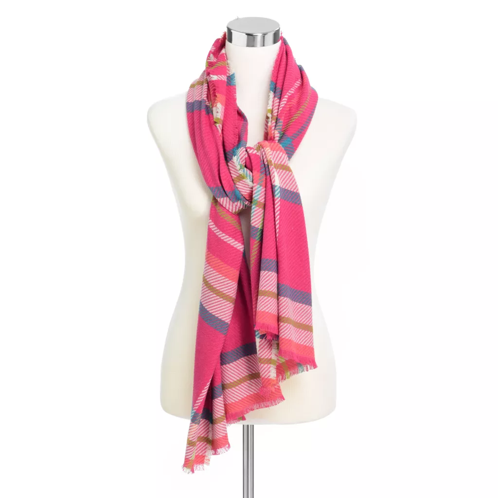 Super soft feel and brightly colored appeal bring this plaid scarf to life. Add a pop to your outfit while staying extra cozy!