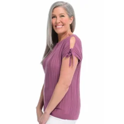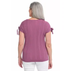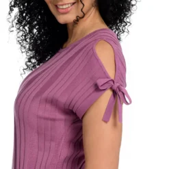 The vertical rib stripe adds texture, while the tie sleeves and keyhole-design add a feminine touch. The breathable fabrication blend is the just-right weight to bring into your summer wardrobe!